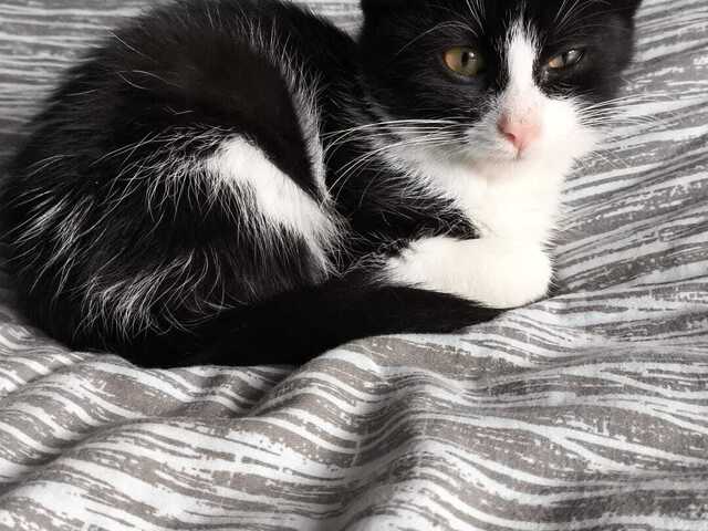 Przeszła panleukopenię, więc szuka domu z kotami po szczepieniach. Maluchów trochę się boi, ale gdy wyczuje ciepło i zabawę to rozkwita.
